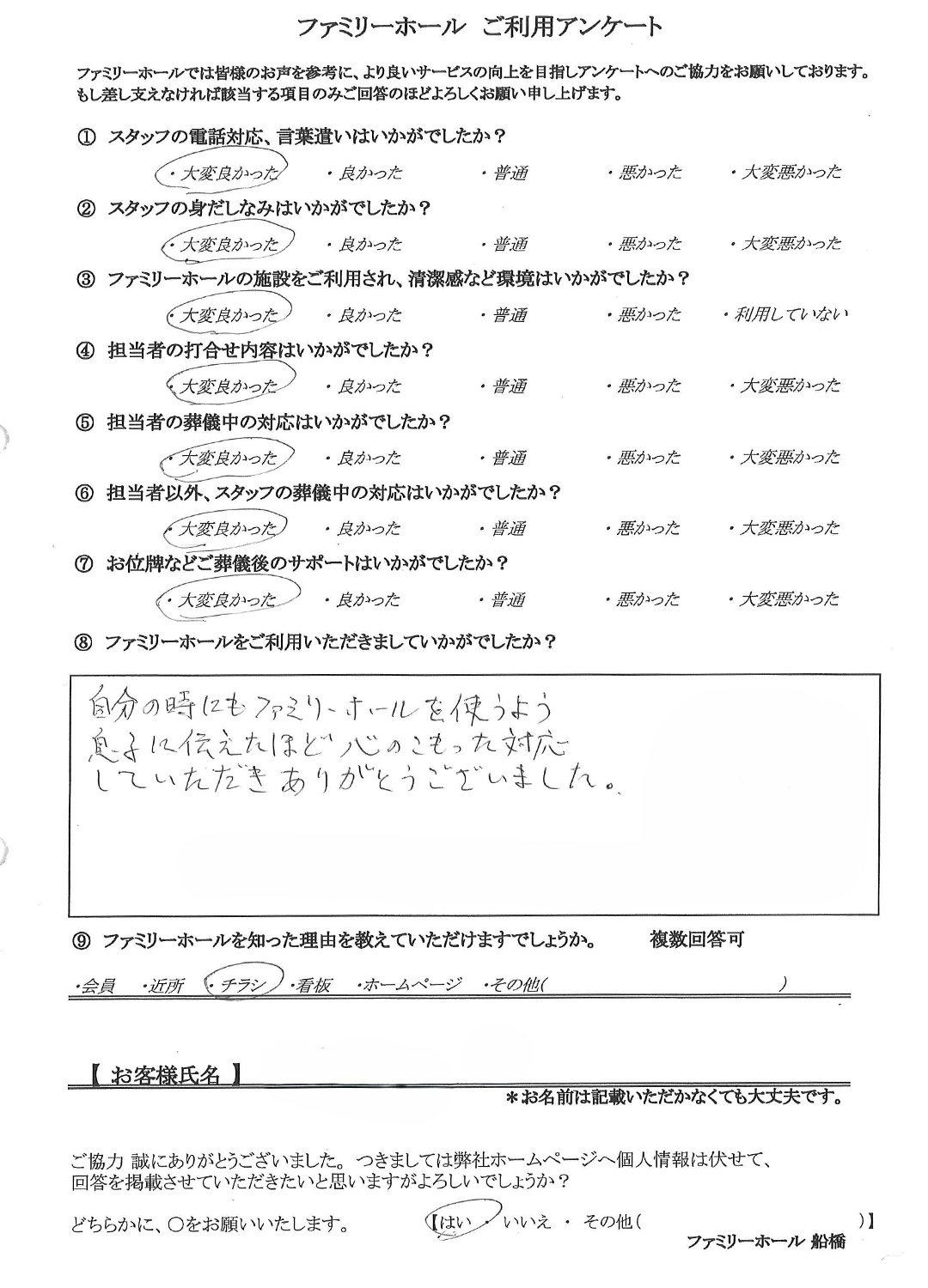 「自分の時にも使うよう息子に伝えたほど、心のこもった対応をしていただきました」
